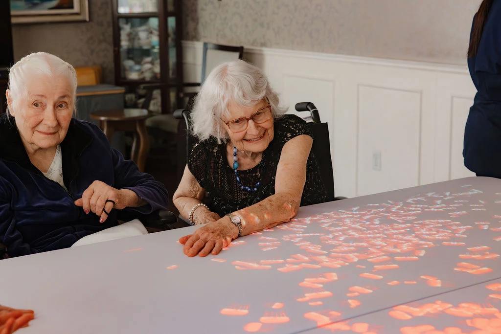 The interactive projector has quickly become a favourite among residents. As the team continues to explore its features, many residents are drawn to the games that involve sweeping motions or touching projected objects, delighting in experiences like watching fish swim across the table or flowers bloom beneath their fingertips.